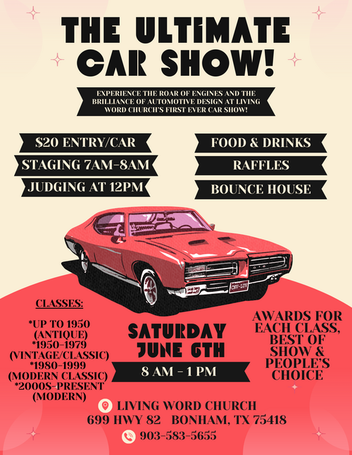 Living Word Church of God Car Show Saturday June 6th 8 am - 1 pm